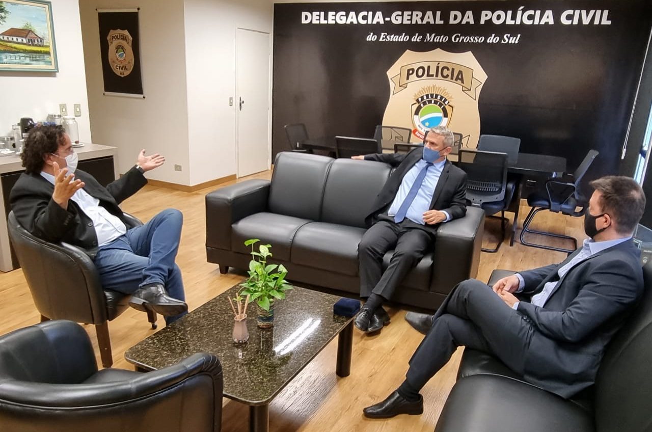 Campo Grande (MS): O Delegado-Geral da Polícia Civil – Adriano Garcia Geraldo – recebeu, na tarde desta quinta-feira (23), a visita do Adido Policial Adjunto, da Embaixada da França no Brasil, com sede em Brasília – Sergie Giordano. Na ocasião, o