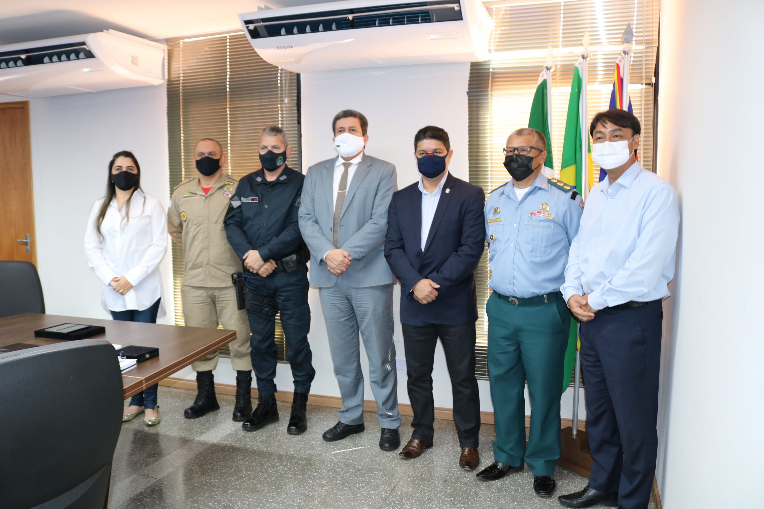 O delegado geral da Polícia Civil, Adriano Garcia Geraldo, participou na manhã de hoje, 19/08, de duas solenidades, que contou com a presença do ministro da justiça e segurança pública, Anderson Torres, do governador Reinaldo Azambuja, do secretário de
