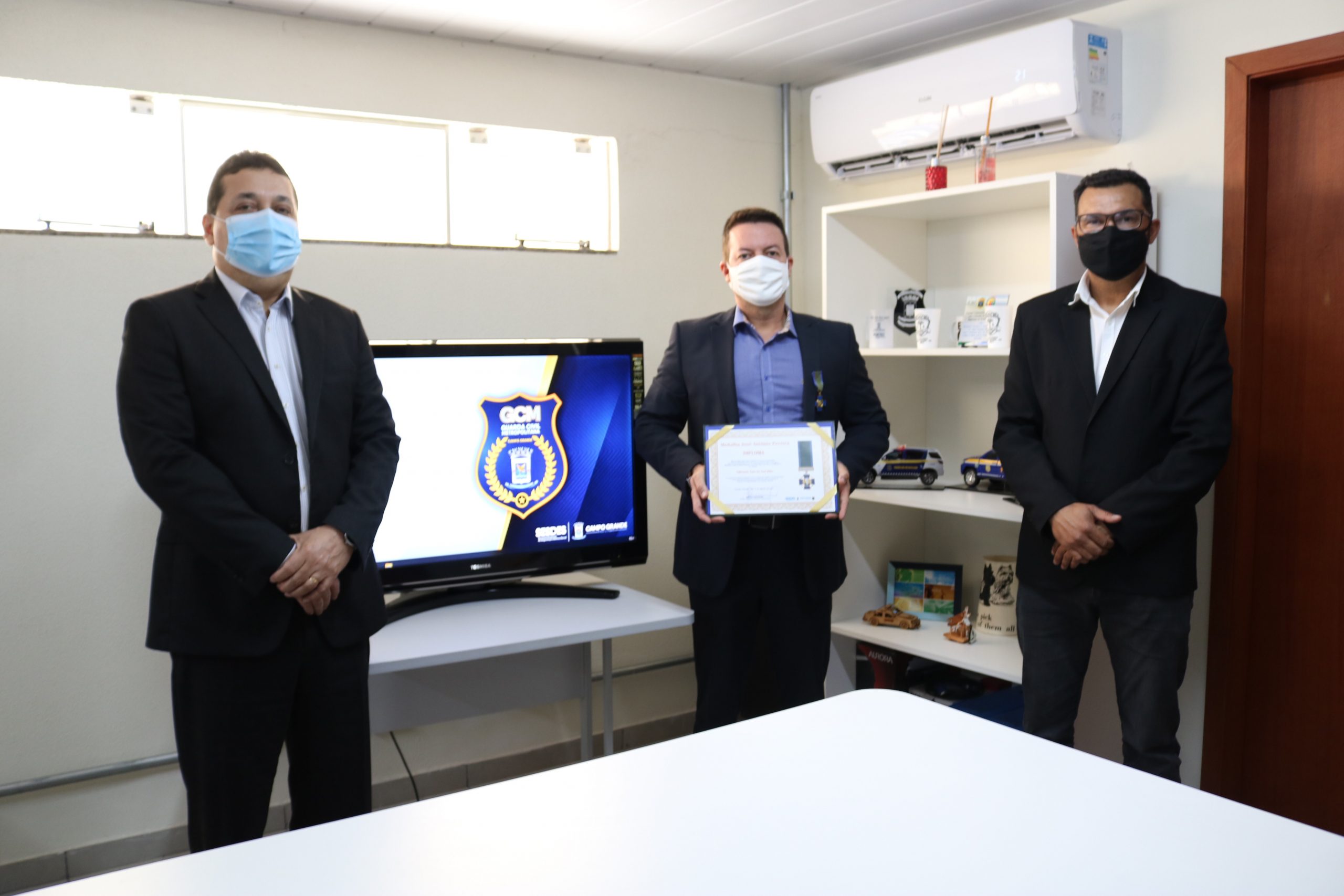 O delegado-geral da Polícia Civil, Adriano Garcia Geraldo, recebeu ontem, 20/08, a medalha José Antônio Pereira. A comenda foi entregue pelo secretário especial de segurança pública e defesa social, Valério Azambuja. Além do delegado-geral, o