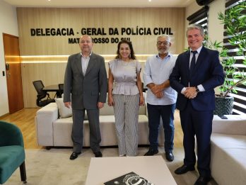 Na manhã desta quinta-feira (30), o Delegado-Geral da Polícia Civil de Mato Grosso do Sul, Lupérsio Degerone Lúcio, acompanhado dos assessores jurídicos, delegados João Eduardo Santana Davanço e Ricardo Meireles Bernardinelli, participou de uma
