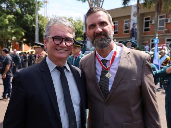 O delegado regional adjunto de Três Lagoas e chefe da Seção de Investigações Gerais (SIG), Ricardo Henrique Cavagna, foi homenageado nesta sexta-feira (5), durante a solenidade alusiva aos 190 anos da Polícia Militar de Mato Grosso do Sul (PMMS), com a