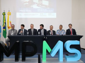 O Delegado Geral da Polícia Civil – Lupérsio Degerone Lúcio, juntamente com o Secretário-Executivo de Segurança Pública do MS – Cel. Wagner Ferreira e o diretor do Departamento de Polícia Especializada – delegado Ivan Barreira participou, na