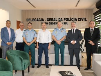 O Delegado Geral da Polícia Civil de Mato Grosso do Sul, Lupérsio Degerone Lucio, juntamente com os diretores dos Departamentos que compõem a estrutura organizacional da instituição, recebeu na tarde desta terça-feira (1º/10), a visita de oito novos