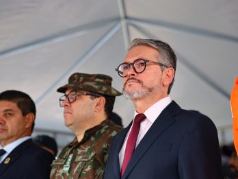 O Delegado Geral da Polícia Civil de Mato Grosso do Sul Lupérsio Degerone Lúcio participou, na tarde de ontem (10), juntamente com o governador do estado – Eduardo Correa Riedel, da solenidade de abertura do SuperAMAS, tradicional feira de negócio do