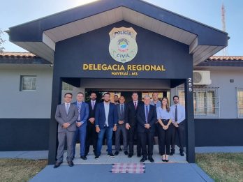 Nesta terça-feira (11), o recém empossado Diretor de Polícia do Interior (DPI), Jairo Carlos Mendes e o Coordenador de Operações do DPI, João Reis Belo realizaram uma visita de trabalho à Delegacia Regional de Polícia (DRP) de Naviraí, onde se