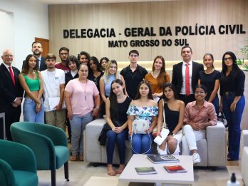 Acadêmicos do primeiro período do curso de Direito da Universidade para o Desenvolvimento do Estado e da Região do Pantanal (Uniderp) estiveram nesta quinta-feira, 29/02, na Delegacia-Geral da Polícia Civil. Eles foram recebidos pelo Delegado-Geral,