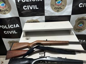 A Polícia Civil, por intermédio da Delegacia de Eldorado0-MS, apreendeu nesta quarta-feira, 22/11, um fuzil calibre .762 do tipo mosquetão e dois rifles, calibres .22 e 288. O dono das armas foi autuado em flagrante. Segundo apurado, após tomar