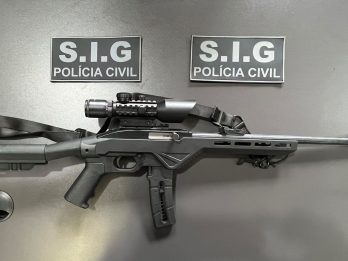 A Polícia Civil, por intermédio da Delegacia de Novo Horizonte do Sul-MS, com apoio da Delegacia de Ivinhema-MS, deu cumprimento a um mandado de busca e apreensão e apreendeu um rifle, calibre.22, que foi utilizada para ferir um cachorro no dia 16 de
