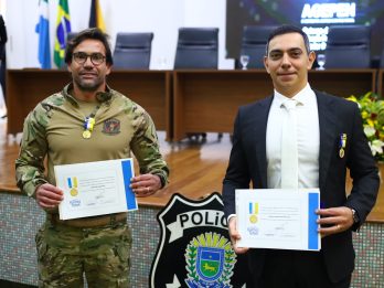O Delegado Wellington de Oliveira – Diretor do Departamento de Polícia da Capital e o Investigador Saulo Soares Filho – Chefe da Seção de Investigações Gerais (SIG) da Delegacia Regional de Dourados foram homenageados nesta terça-feira,