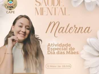 Em homenagem ao dia das mães, a Polícia Civil, por intermédio da Coordenadoria Coordenadoria de Atendimento Psicossocial e Espiritual (CAPE) realiza palestra com o tema “Saúde Mental Materna”. O evento será às 08h30min do dia 12/05, na sede