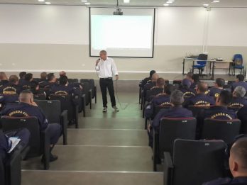 A Polícia Civil, em 28.03, por seu Delegado de Polícia, Titular da DECON, Reginaldo Salomão participou do 4° curso de Capacitação de Guardas Civis Metropolitanos, na Utilização de Armamento Letal, semiautomática, pistola .40, para Concessão, manter