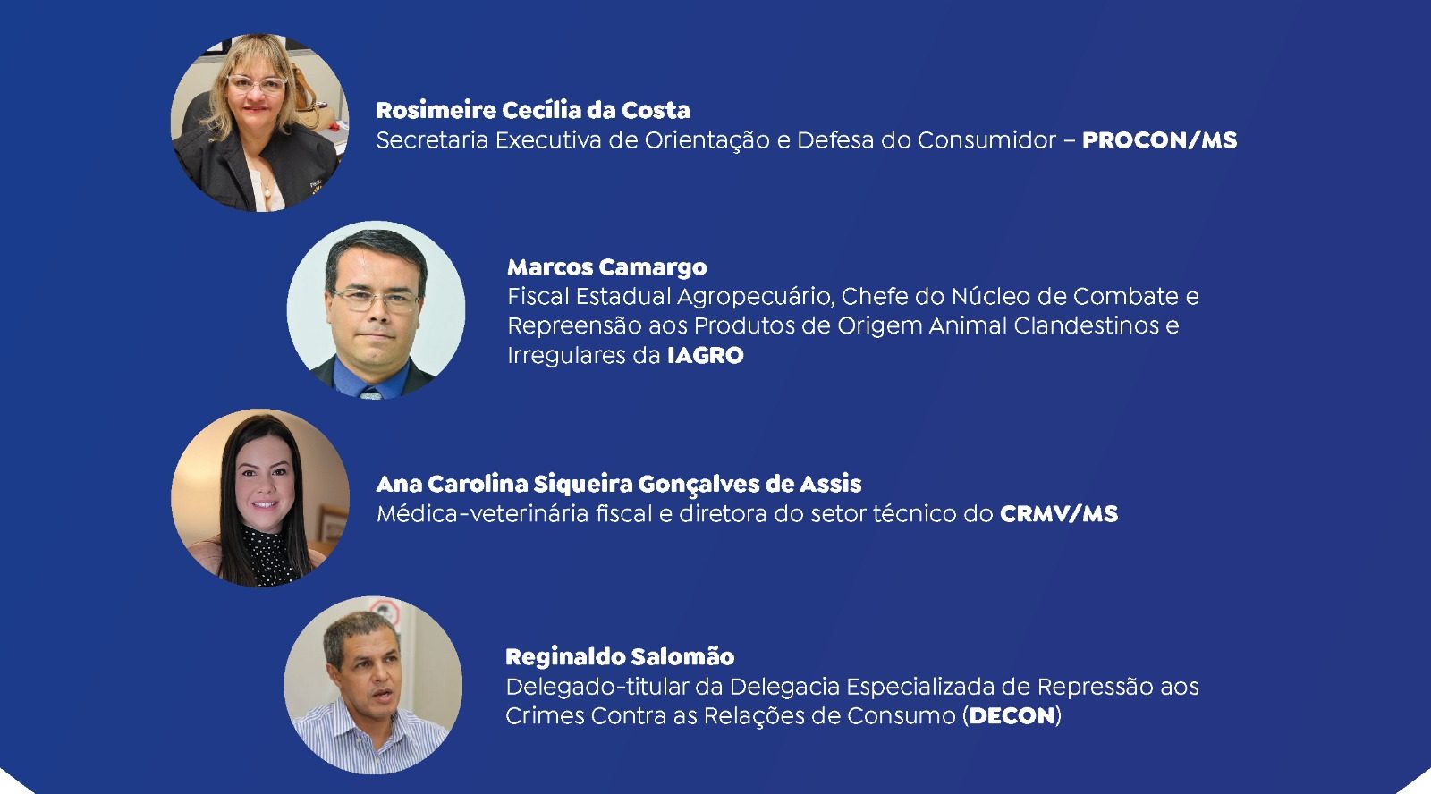 Além do titular da DECON, participaram dos painéis a Secretária Executiva de Orientação e Defesa do Consumidor – PROCON/MS, Rosimeire Cecília da Costa; a médica-veterinária fiscal e diretora do setor técnico do CRMV/MS, Ana Carolina Siqueira Gonçalves de Assis e o chefe do Núcleo de Combate e Repreensão aos Produtos de Origem Animal Clandestinos e Irregulares da IAGRO, Marcos Camargo.