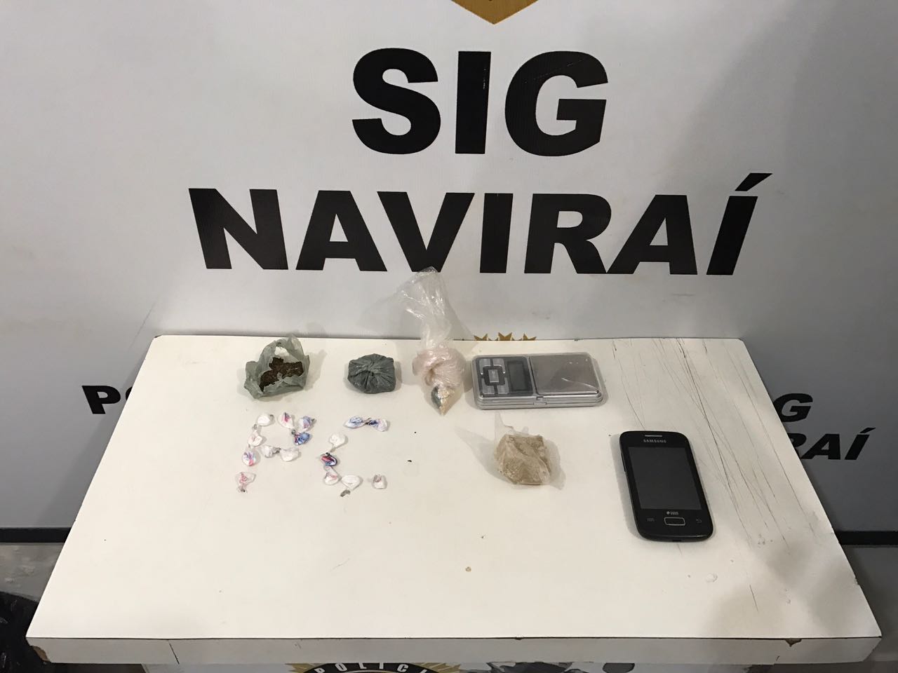 NAVIRAÍ (MS): A Polícia Civil em Naviraí prendeu na tarde de sexta-feira (9) JHONATAN VINICIUS DA SILVA, conhecido como BATATA. No ato da abordagem, o mesmo estava em posse de diversas porções de cocaína, bem como, crack e maconha. Também foi apreendida, uma balança eletrônica de precisão.