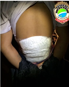Diante das informações, dirigiram-se até as proximidades do Hotel Vale Verde, na Avenida Afonso Pena,  quando foi confirmado através de informações que um casal teria tomado um táxi, na abordagem ao casal foi localizado com Wanderson, em suas costa e pernas, uma fita adesiva colada ao corpo com embalagens plásticas contendo em seu total 1.700Kg de cocaína.01