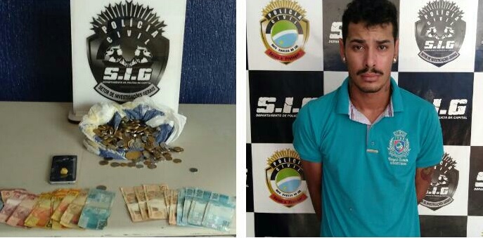 Durante revista, os investigadores identificaram que o mesmo estava com uma porção de basta base e uma quantia de dinheiro trocado.