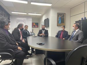 Nesta terça-feira (15), os futuros mestrandos se reuniram com o Delegado Geral Adjunto, Dr. Adriano Garcia Geraldo, com o Diretor da Academia de Polícia, Dr Devair Aparecido Francisco e com os Diretores do Departamento de Polícia Especializada, Dr Roberto Gurgel, e Departamento de Polícia da Capital, Dr Fabiano Nagata, para as tratativas sobre a viagem.